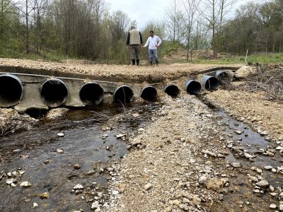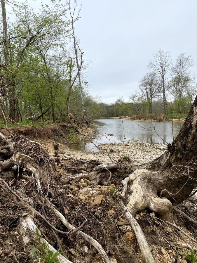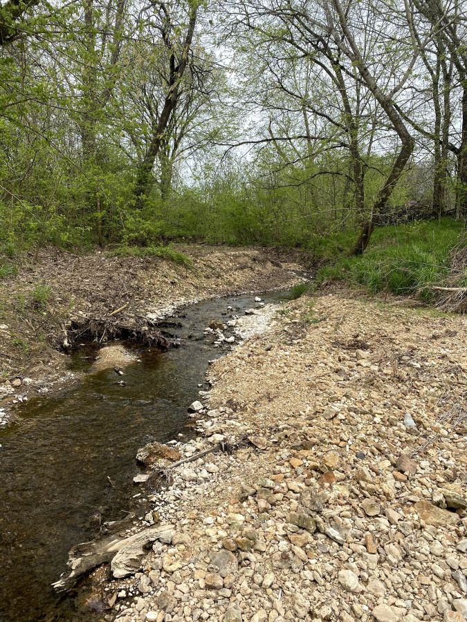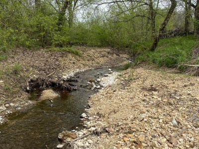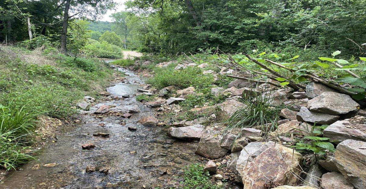 2650 liner feet of streambank were protected in the Upper St. Francis Ecological Drainage unit. On this project site trees were planted, invasive species were removed and managed and native plants were seeded. Within the project area 575 feet of streambank was actively eroding, stream barbs and stone toe protection were constructed to stabilize the areas of erosion. Along with stabilization on Castor River, an unnamed tributary on the property was stabilized using Newberry style riffles and an unstable stream crossing was fixed to prevent incising and restore riffle habitat.